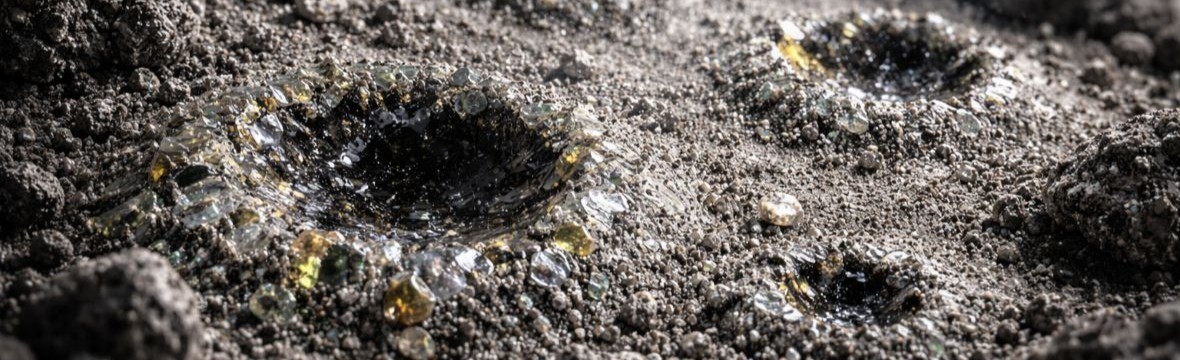 The Moon’s surface is constantly hit by tiny particles of cosmic dust called micrometeorites. Although these particles are very small, often only a few micrometers wide, they travel at extremely high speeds. When they impact the lunar surface, their energy can melt and vaporize nearby minerals.